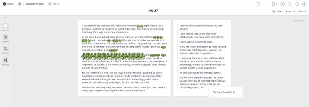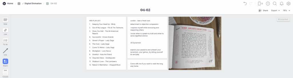 Because there was much to tend to personally since June, this page came together slowly. There are ~230 Milanote Digital Divination boards since the Eris Altar’s inception back in April of 2025, for perspective. That’s a lot of communing with myself. During a season of life where I didn’t have a home or belongings and then rebuilt (catch me still processing ma’am).